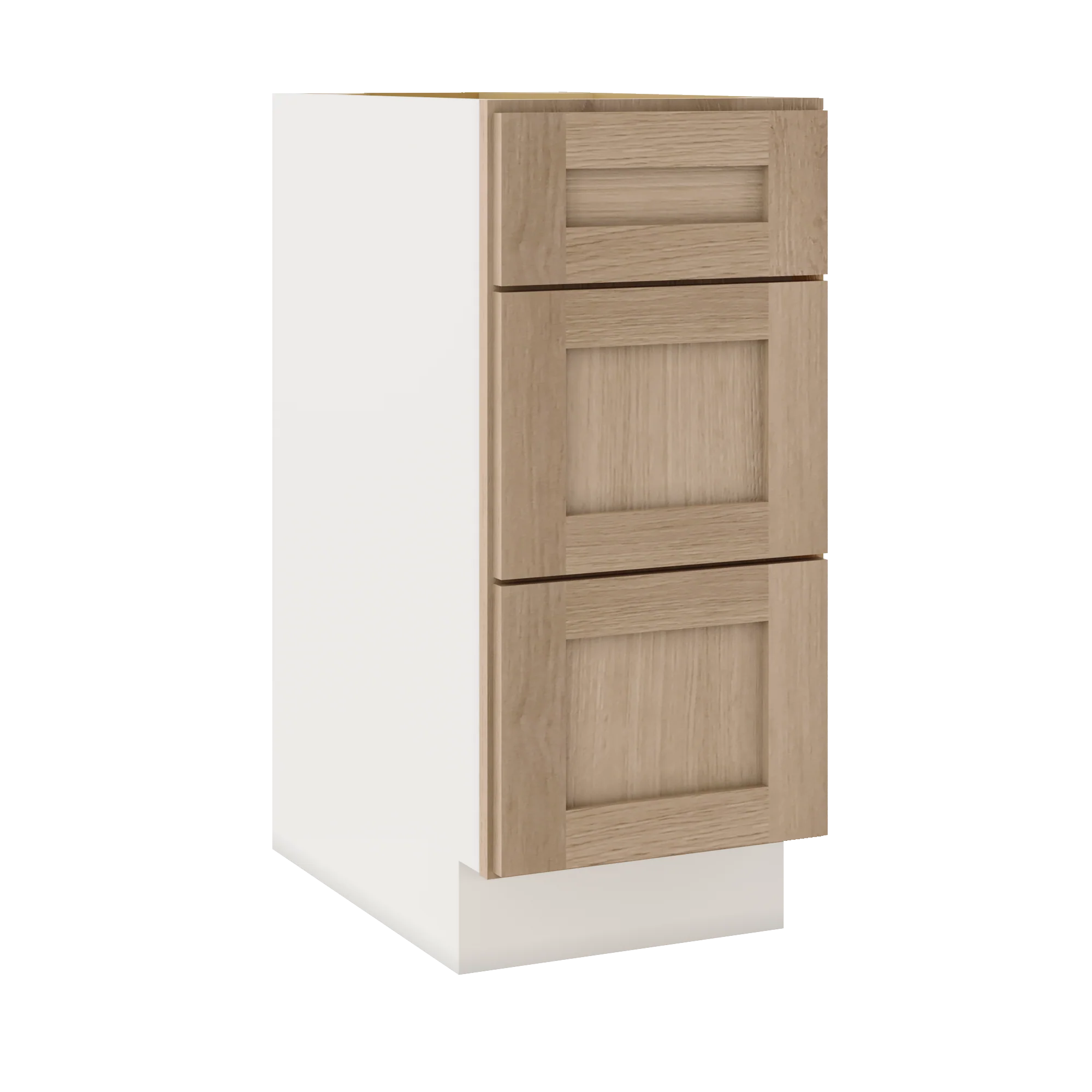 Natural Color 17ROS - Redondo White Oak Shaker 1-1/4" Overlay 3 Drawer Base Cabinet 12", 15", 18", 21", 24", 30", 33" & 36" Wide