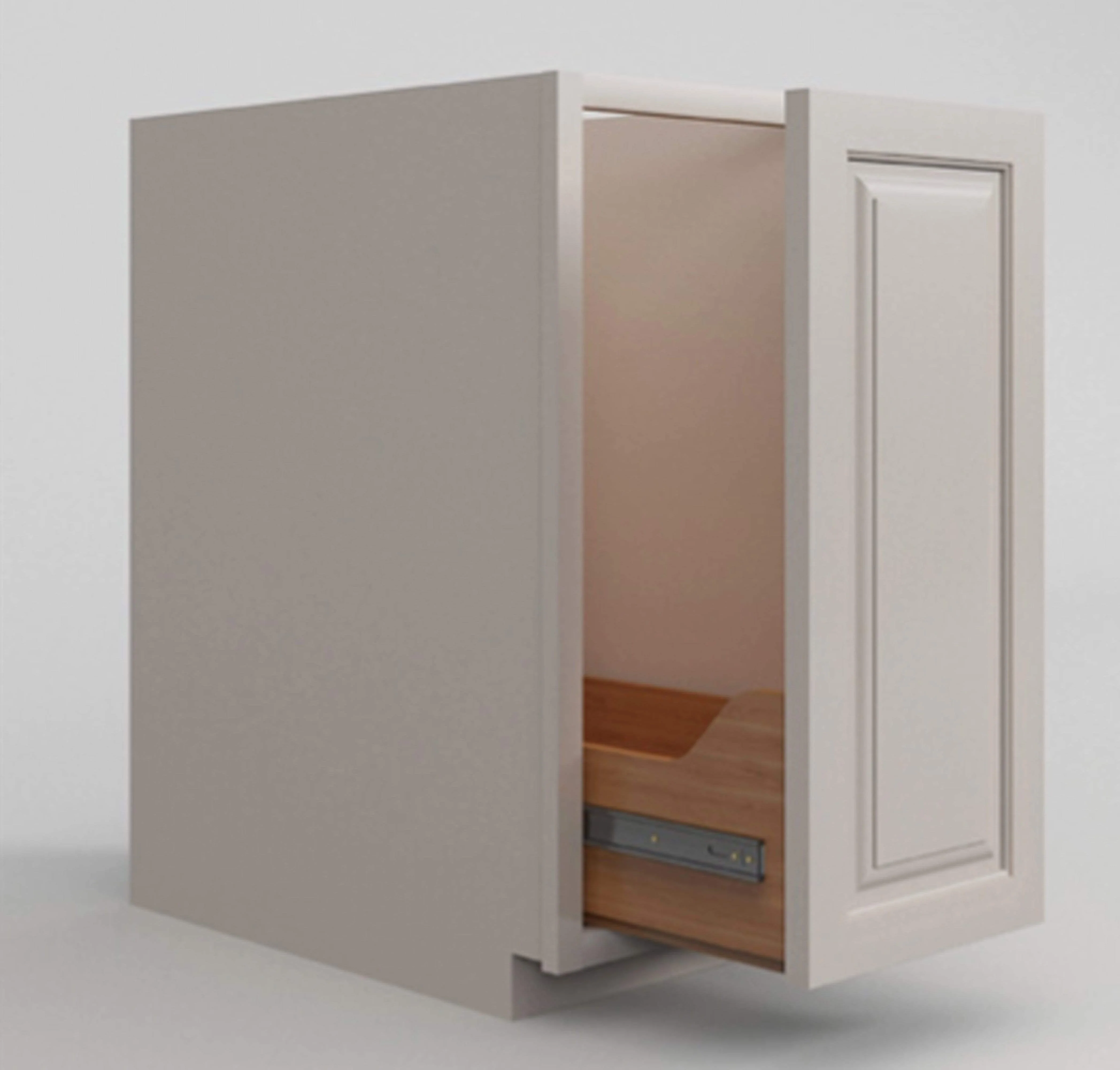 Base Pull Out Trash cabinet is available 18” wide by 24" deep by 34-1/2" tall. Vintage White Inset Raised Panel Trash Pull Out base kitchen cabinet RTA (Ready to Assemble).